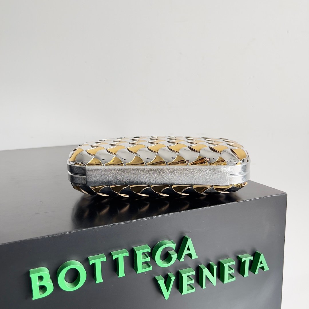 Be the first to review “Clutch Knot in Intrecciato Metallic Leather – Silver Gold”