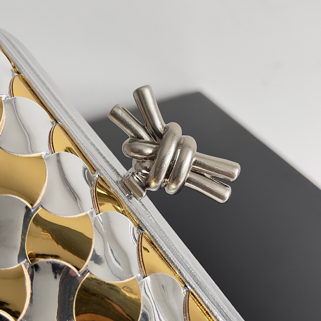 Clutch Knot in Intrecciato Metallic Leather – Silver Gold