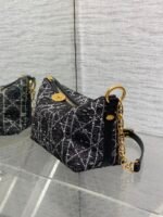 Diorstar Hobo Bag With Chain Tweed With Cannage Motif – Black