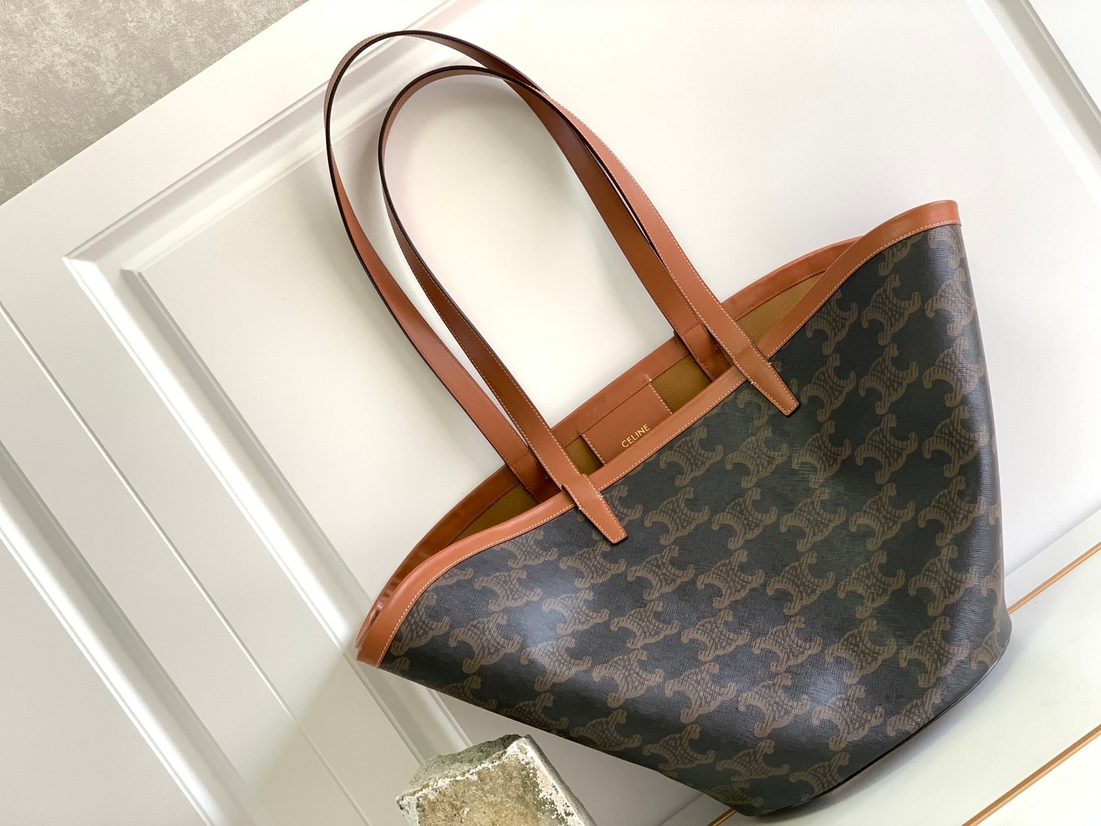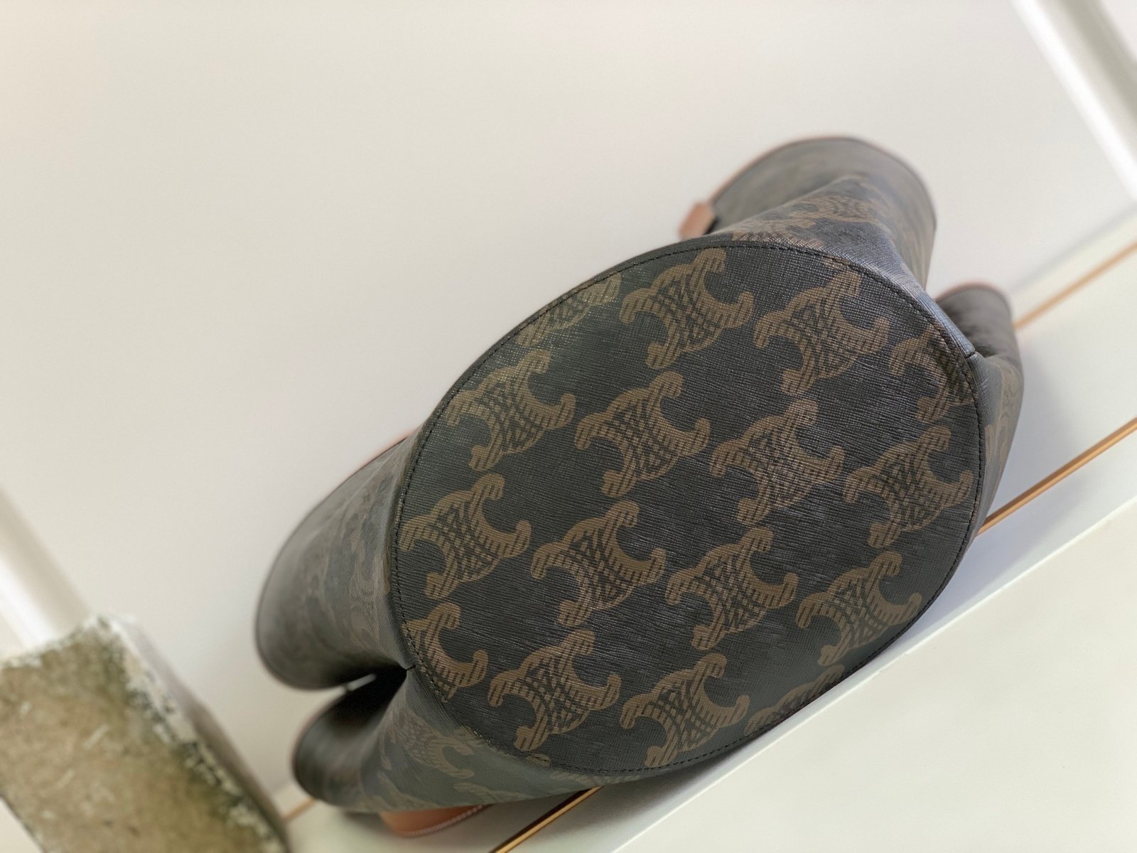Be the first to review “Medium Couffin in Triomphe Canvas and Calfskin – Tan”