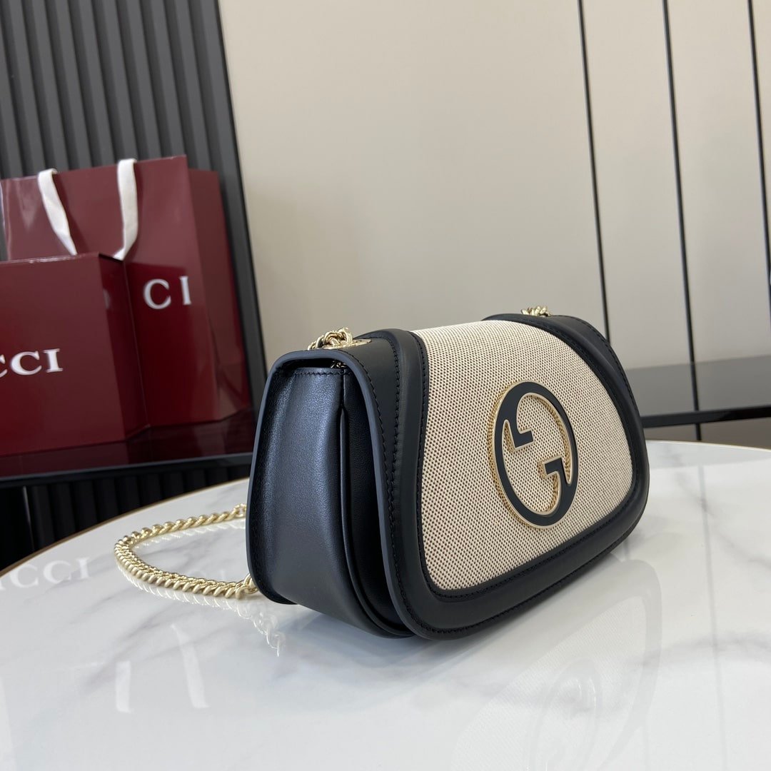 Mini Blondie Shoulder Bag Canvas and Leather with Enamel Interlocking G