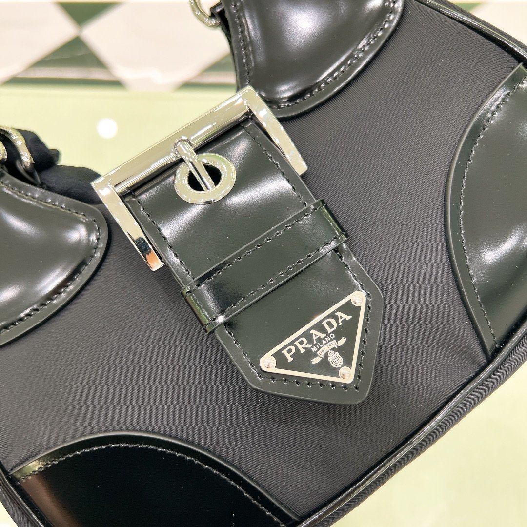 Be the first to review “Re-Edition 2002 Moon Handle Bag in Nylon with Leather Trim – Black”