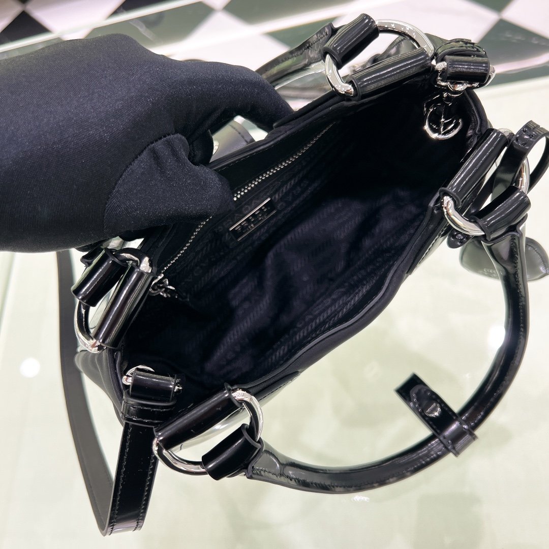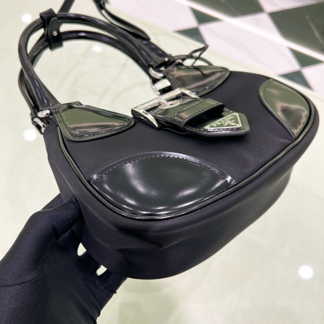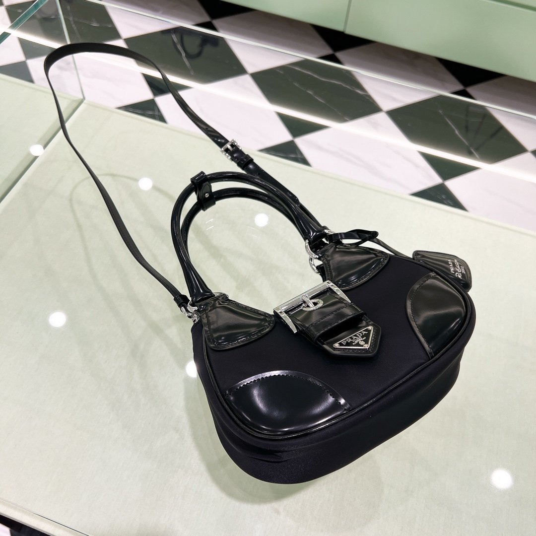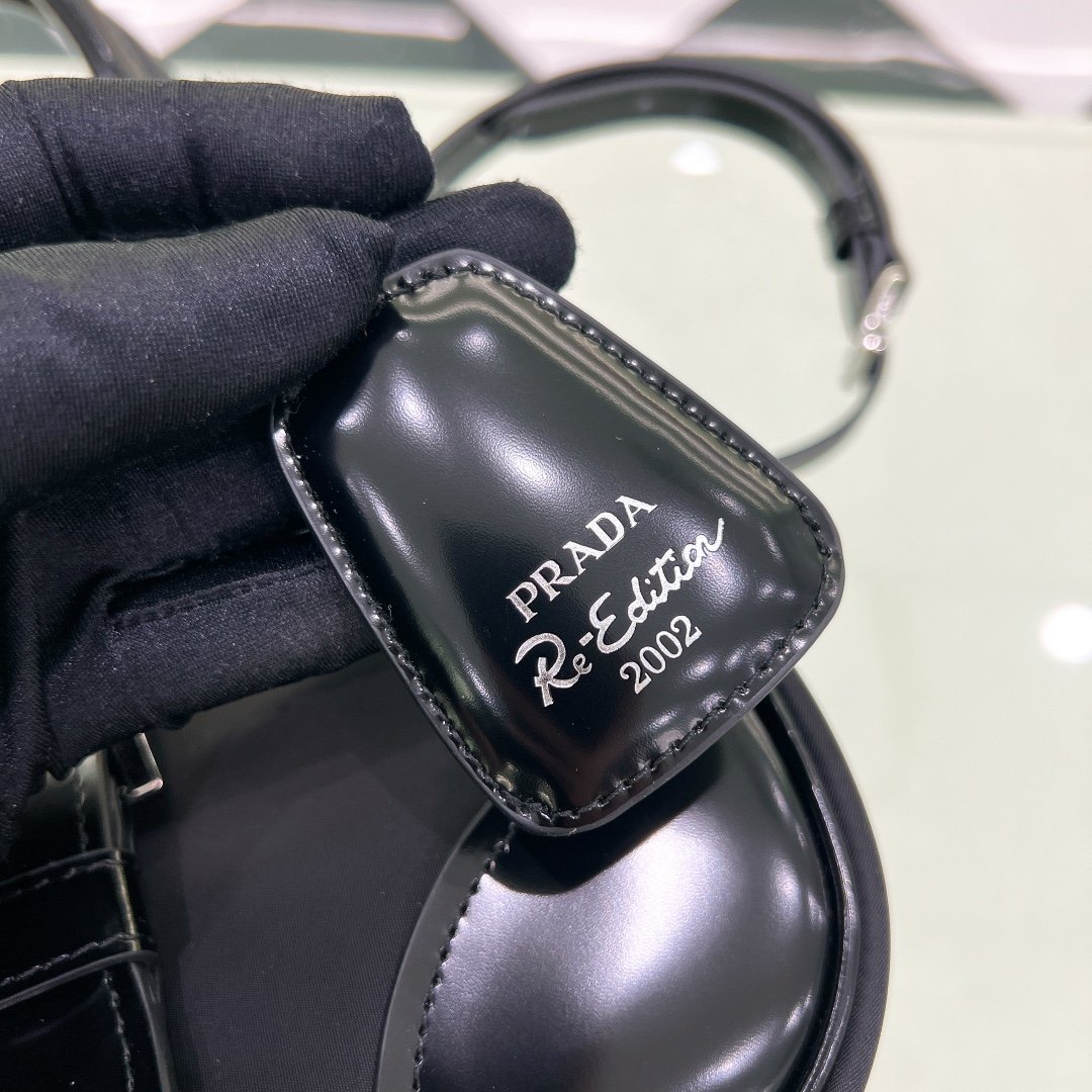 Re-Edition 2002 Moon Handle Bag in Nylon with Leather Trim – Black