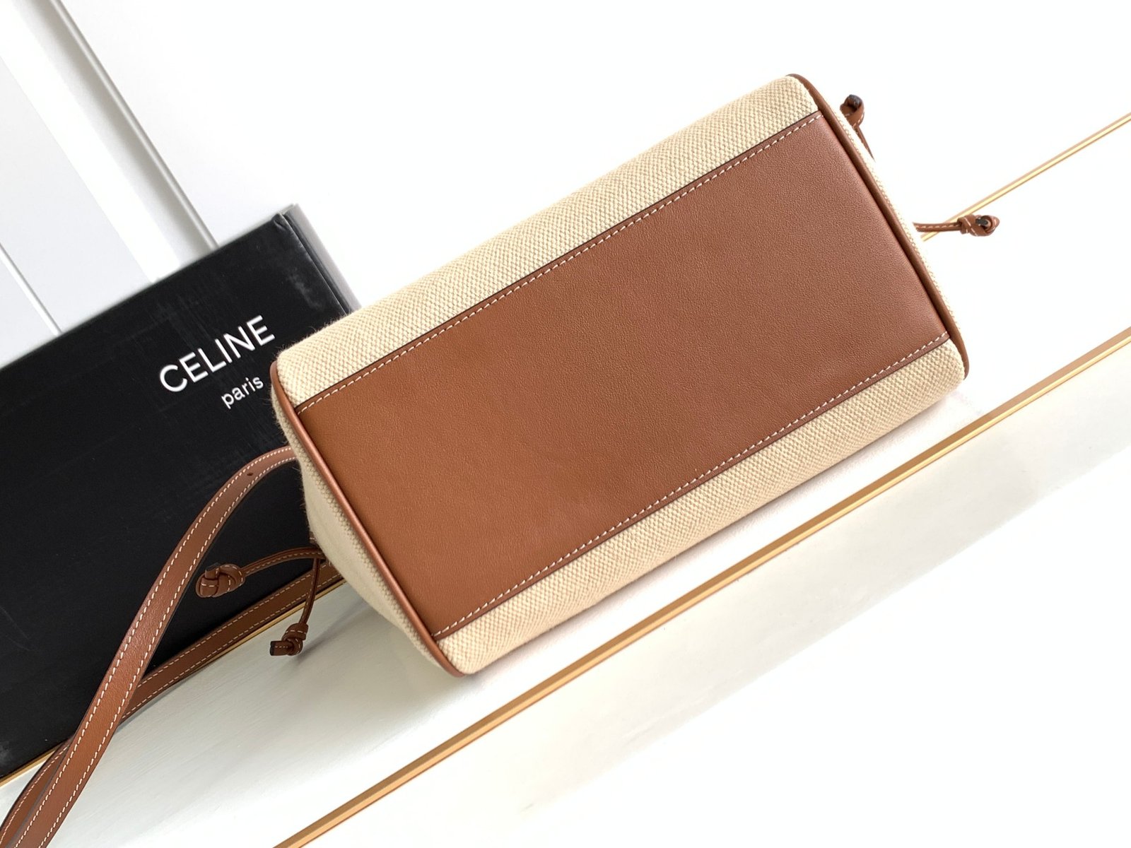 Be the first to review “Small Cabas Drawstring Cuir Triomphe in Textile and Calfskin – Natural Tan”